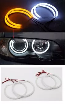 SET LED ANGEL EYES COTTON ALB-GALBEN BMW SERIA 3 E46 COMPATIBIL FAR CU LUPA Modelul se remarca prin DRL culoare alba si semnalizare galbenaDimensiune: 4*131mm Tensiune de lucru 12V Lumina albaPret pe set 4 Bucati