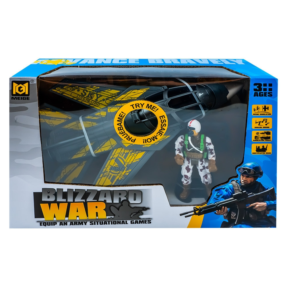 – Setul contine: 1 avion militar, 1 figurina pilot, 4 arme si 1 statie emisie-receptie.