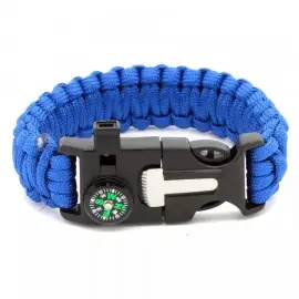 Bratara de supravietuire in aer liber, tip army, 5 in 1, paracord, busola , fluier, cutit, cremene, albastra, 26 cm