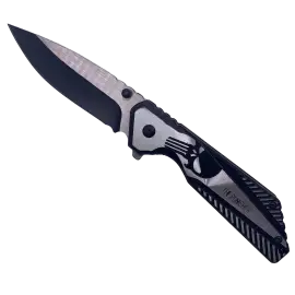 Cu un design special, inspirat din cunoscuta serie de filme „The Punisher”, acest briceag are gravat in manerul sau craniul ce reprezinta o amprenta a show-ului, facandu-l un accesoriu perfect pentru fani si colectionari de cutite si bricege unice.