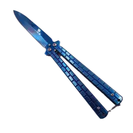 Cuțit Fluture cu Tăiș, Sistem Prindere Curea, Model Pătrat, 23 cm, Albastru: Eleganță și Utilitate in Unul Singur