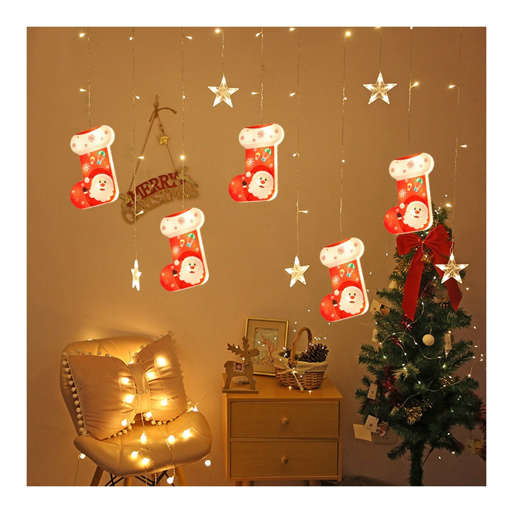 Instalatie pom Craciun, Perdea luminoasa – Stelute + Cizmulite, alba, 2.60×0.65 cm