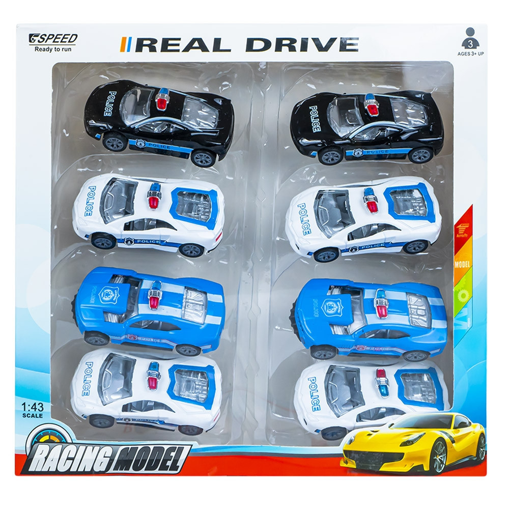 Masinute politie metal frictiune, 8 buc/set