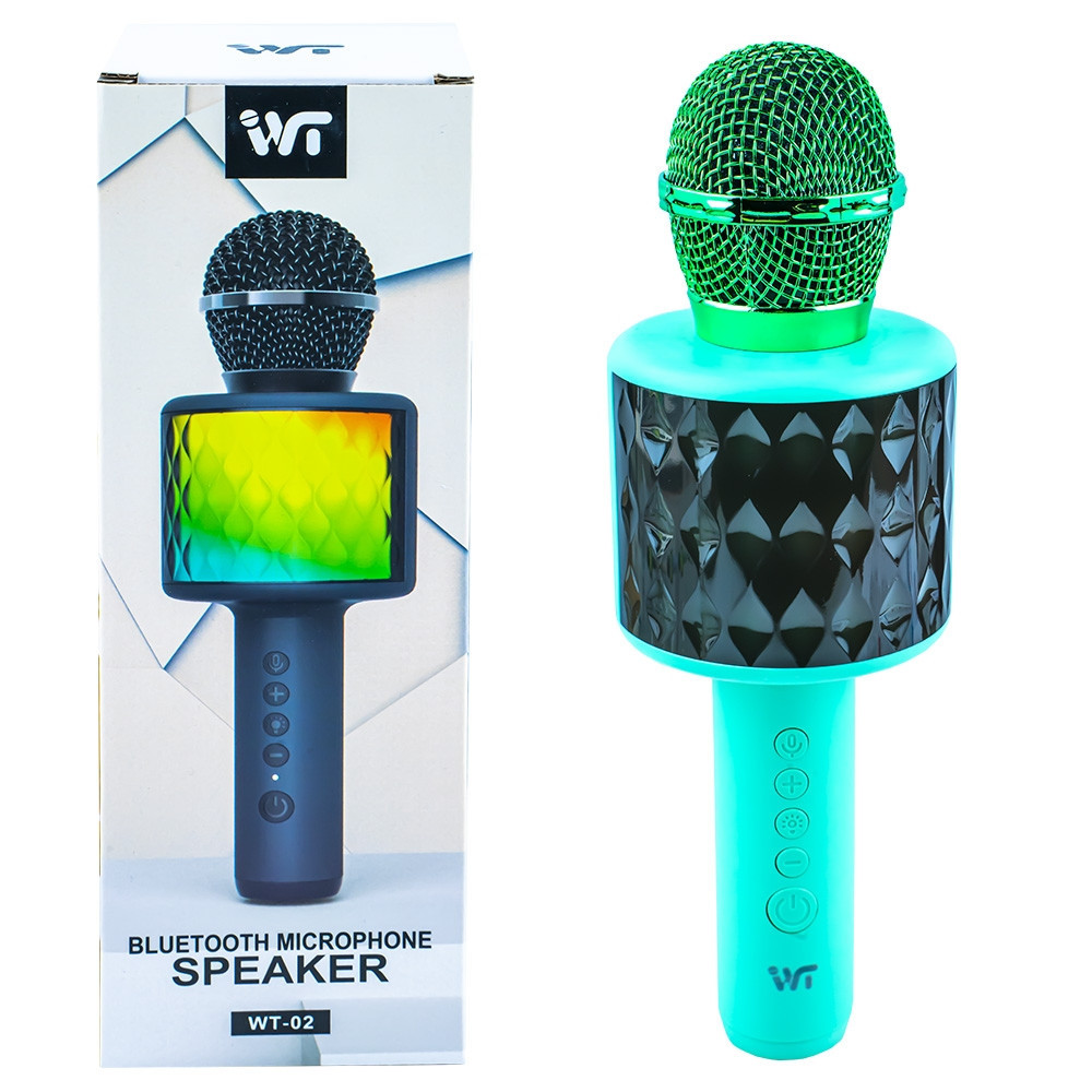 – Pentru o atmosfera spectaculoasa microfonul are efecte luminoase in nuante curcubeu, cu diverse jocuri de lumini.