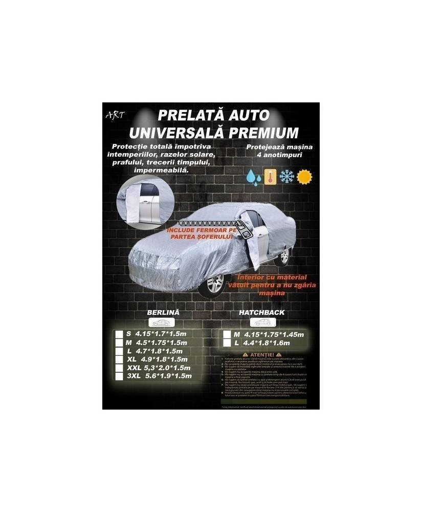 Prelata PREMIUMMarimea: MSpecificatii: Dimensiune: 4.15×1.75.x1.45m. Include fermoar pentru usa sofer. Este confectionata din material rezistent la apa, zapada si soare. Pe partea interioara are un material vatuit pentru a nu zgaria caroseria.Pret pe bucata.