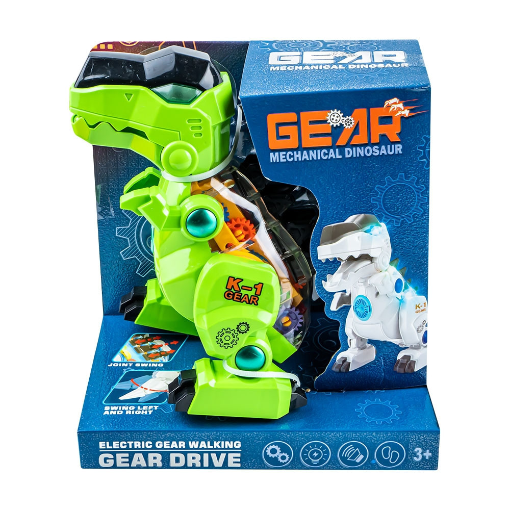 – Jucaria are forma de dinozaur cu carcasa transparenta si interior multicolor cu mecanism ingenios de rotite dintate cu ajutorul caruia opilasii pot fi invatati, in timpul jocului, notiuni despre angrenaje si mecanisme.