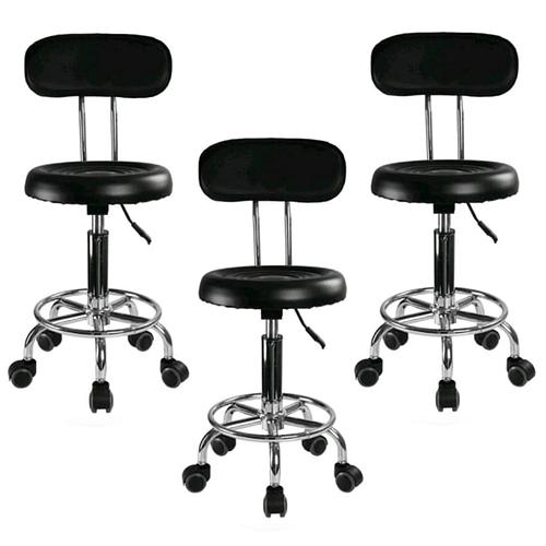 Set 3 bucati – Scaun hidraulic cu spatar si roti, Negru, Taburet rotativ, Pentru salon, Cosmetica, Manichiura