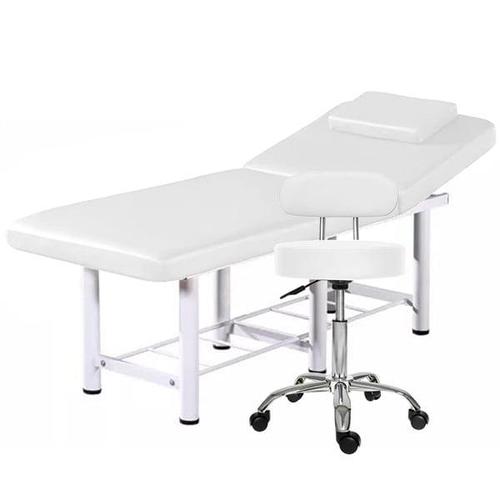Set Pat cosmetica Alb, 186x70x70cm, Masa masaj profesional, 22kg si Scaun salon cu spatar Alb, Taburet rotativ
